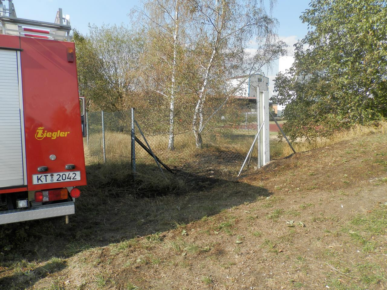 Am 22.08.2015 entdeckte einer unserer Kameraden um 16:04 Uhr einen kleinen Flächenbrand hinter dem Sportplatz. Da es sich lediglich um eine Fläche von ca. 10 Quadratmetern handelte, konnte auf eine Alarmierung verzichtet werden. Vier privat alarmierte Kameraden rückten mit dem LF 8/6 aus und hatten den Brand letztendlich rasch unter Kontrolle gebracht.