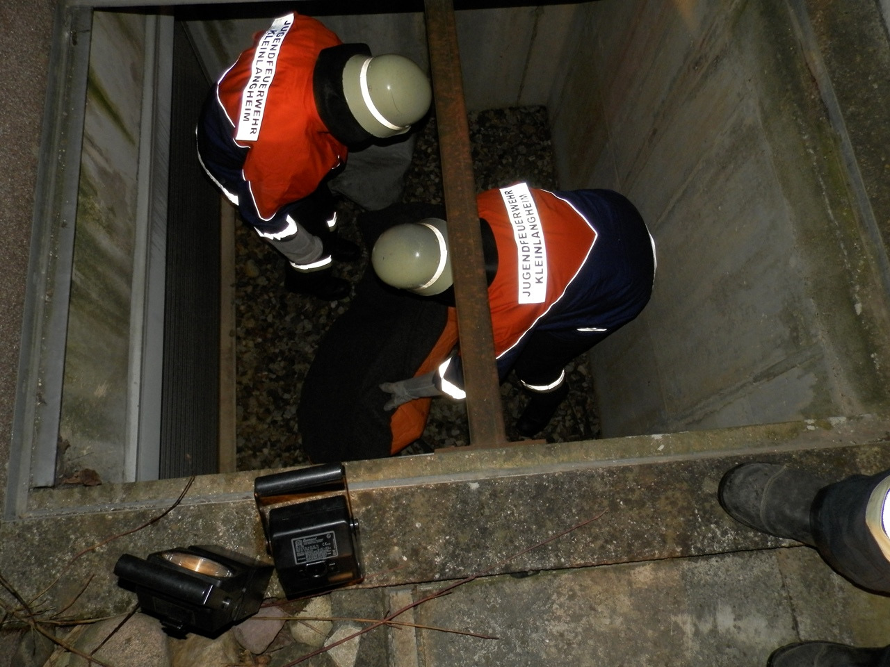 Am Sonntag um 04:00 Uhr wurde die erste Gruppe zu einer hilflosen Person in einer Grube alarmiert. Bei nächtlichen Arbeiten muss die Person wohl in die Grube gestürzt sein und hat das Bewusstsein verloren. Vor Ort wurde die Einsatzstelle zuerst ausgeleuchtet. Anschließend stieg ein Trupp mit einer Leiter in die Grube ab. Dort angekommen fixierten sie den verletzten auf einer Trage, sodass dieser durch den Rest aus der Grube gezogen werden konnte. Dazu wurde an jeder der vier Ecken der Trage jeweils eine Leine befestigt, um diese waagerecht nach oben befördern zu können. Nach der Befreiung wurde der Patient an den Rettungsdienst übergeben, worauf unser Einsatz gegen 04:40 Uhr beendet war.